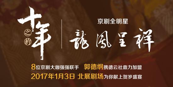 “十年之约京剧全明星《龙凤呈祥》”在众筹正式上线,一天之内,完成众筹进度20%,众筹金额超10万元。京剧界的这场贺岁大戏帷幕拉开。八位京剧名家的顶级阵容,王平、谭孝曾、朱强、赵葆秀、孟广禄、迟小秋、李宏图、杨赤,皆各行当翘楚;更有相声大咖郭德纲携德云社鼎力助阵,在新年伊始共同为戏曲做一件实事,为国粹发声。